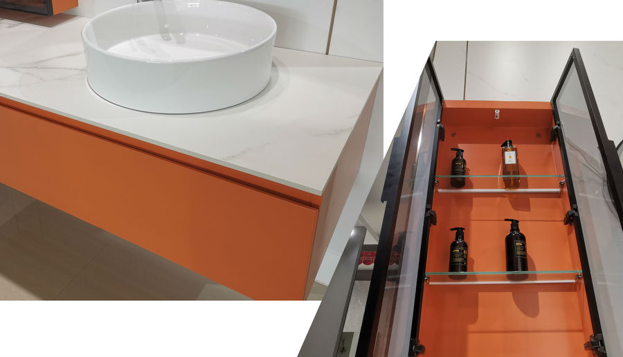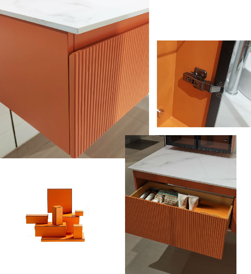 除去方圓融合的造型,色彩也是美加華方圓浴室柜的殺手锏。受國際奢侈品牌愛馬仕啟發(fā),經(jīng)專業(yè)調(diào)色師調(diào)配“愛馬仕橙”,色彩飽滿明媚,卻又不會過分艷麗夸張。