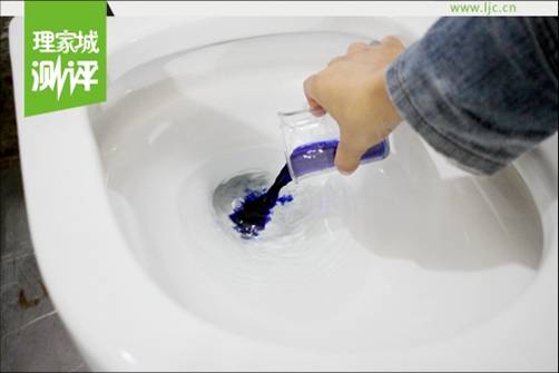 小編用紅墨水、藍墨水進行測試,按下沖水鍵,紅藍顏色瞬間被沖走,釉面潔白如新。
