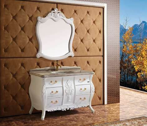 MFG-24實(shí)木仿古柜,采用泰國(guó)進(jìn)口橡木,配以水晶木紋白天然大理石臺(tái)面,以及圓弧形立體大理石臺(tái)下盆。純白色彩配以金色五金拉手,整體外觀凸現(xiàn)新一代田園風(fēng)格,產(chǎn)品游走于現(xiàn)代與復(fù)古之間,線(xiàn)條簡(jiǎn)約而不簡(jiǎn)單,品味低調(diào)而不失奢華。中間蘭花的雕刻修飾,經(jīng)由純實(shí)木手工打造,散發(fā)著強(qiáng)烈的鄉(xiāng)村田園風(fēng)情和野趣,讓那種輕松、不雕琢的感官占據(jù)冗繁的心靈,享受徹底的純凈的世界。